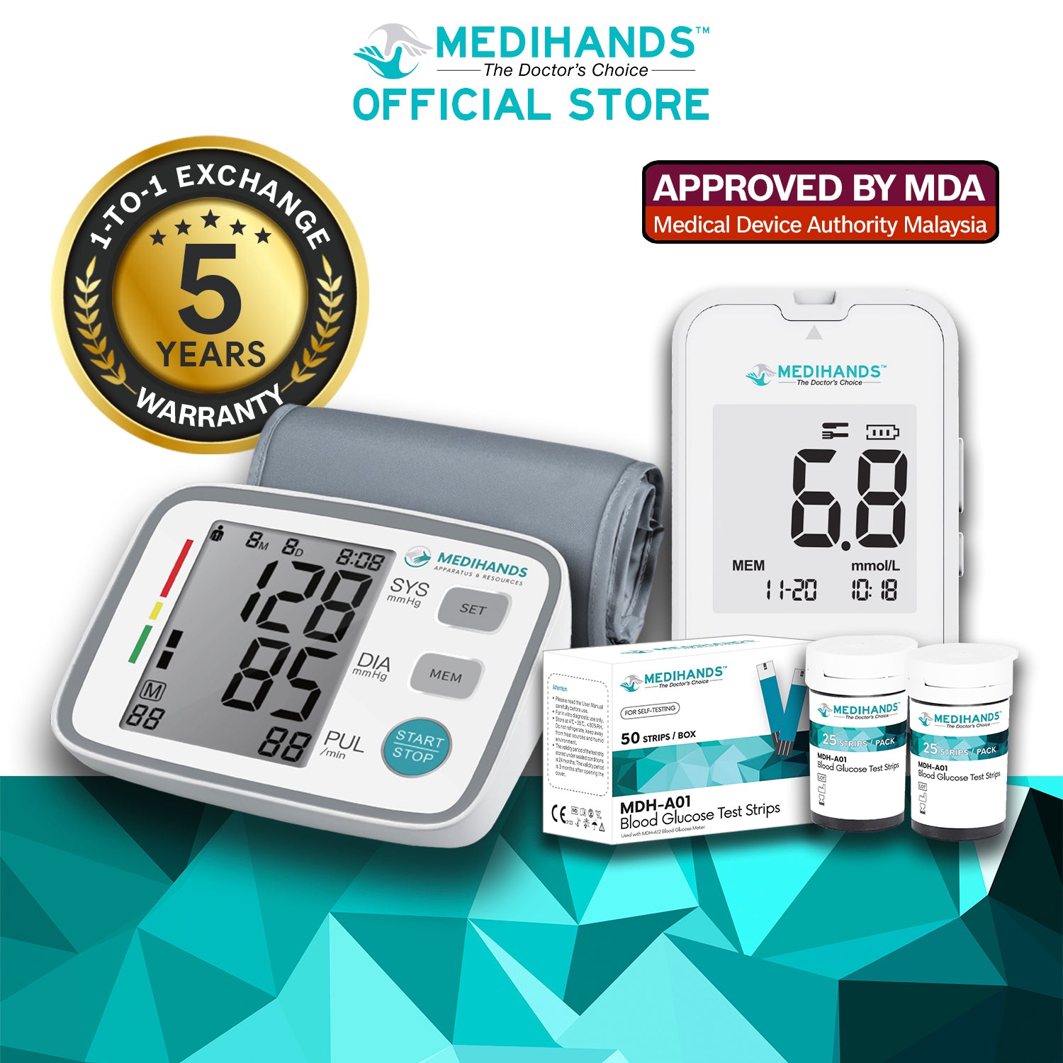 Medihands Blood Pressure Monitor & Blood Glucose Monitor MDH-A12 Bundle Deal
