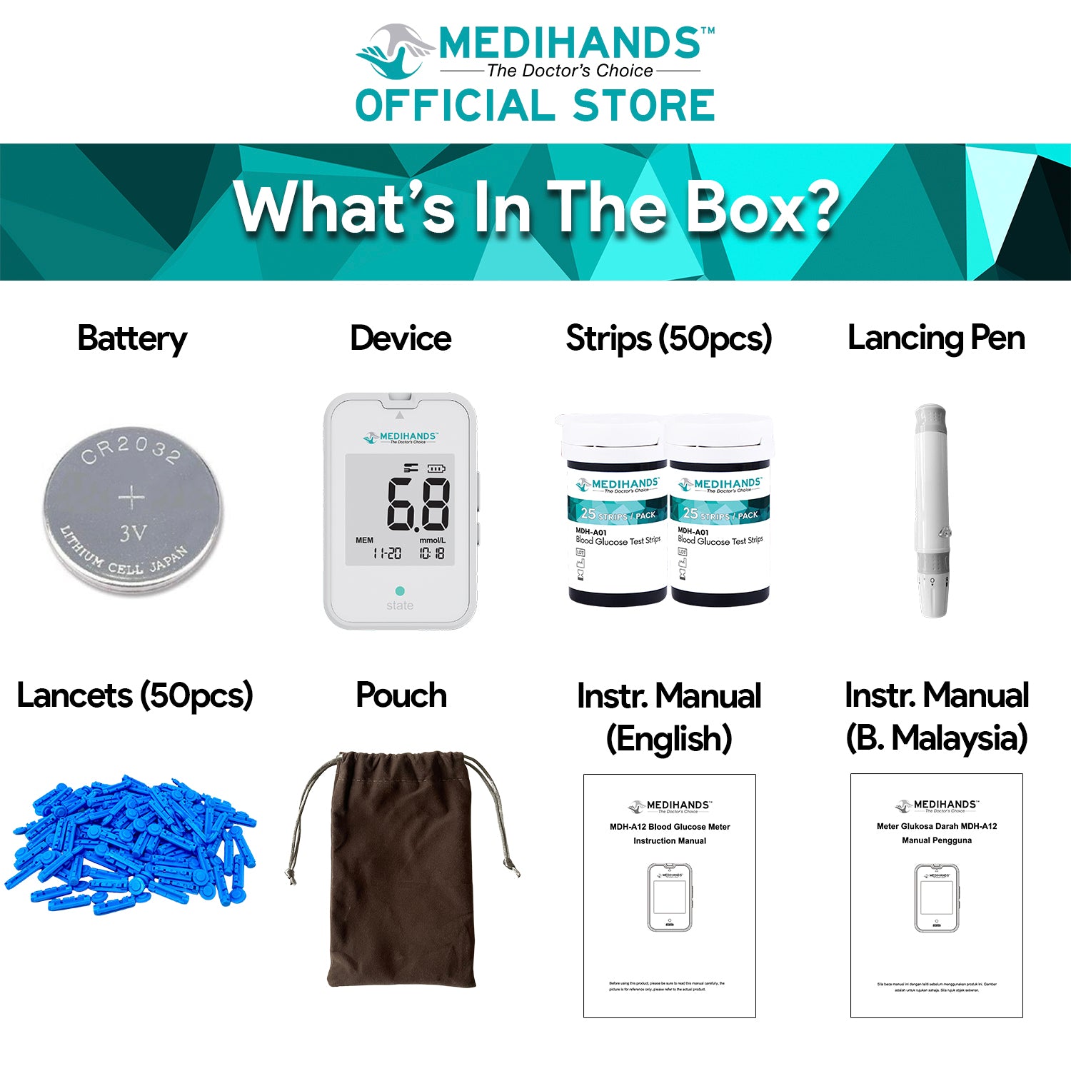 Medihands MDH-A12 Blood Glucose Monitor [Full Set]