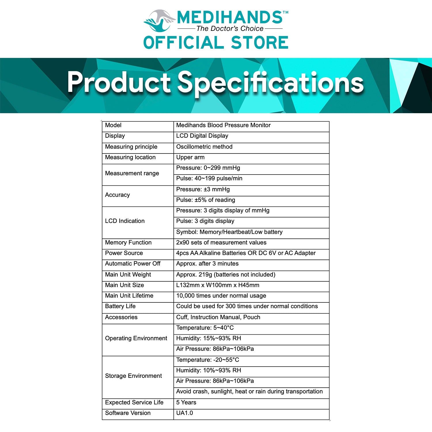 Note: Medihands Blood Pressure Monitor is meant for use for individuals aged 12 and above only.